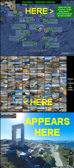 and the portico appears in Frame 4. From there it is up to you to either simply read in the top left that it is on Naxos or, use the arrows to see this whole amazing area or, Select "View on Google Maps" to open in a new window and use the Google Tools for more information. Then, knowing it is Naxos, you may go back to Frame 2 and Select Naxos to plan your trip there - EASY! |